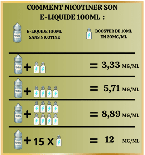 Ajouter 2 booster de nicotine pour obtenir un taux final d'environ 3 mg/ml.